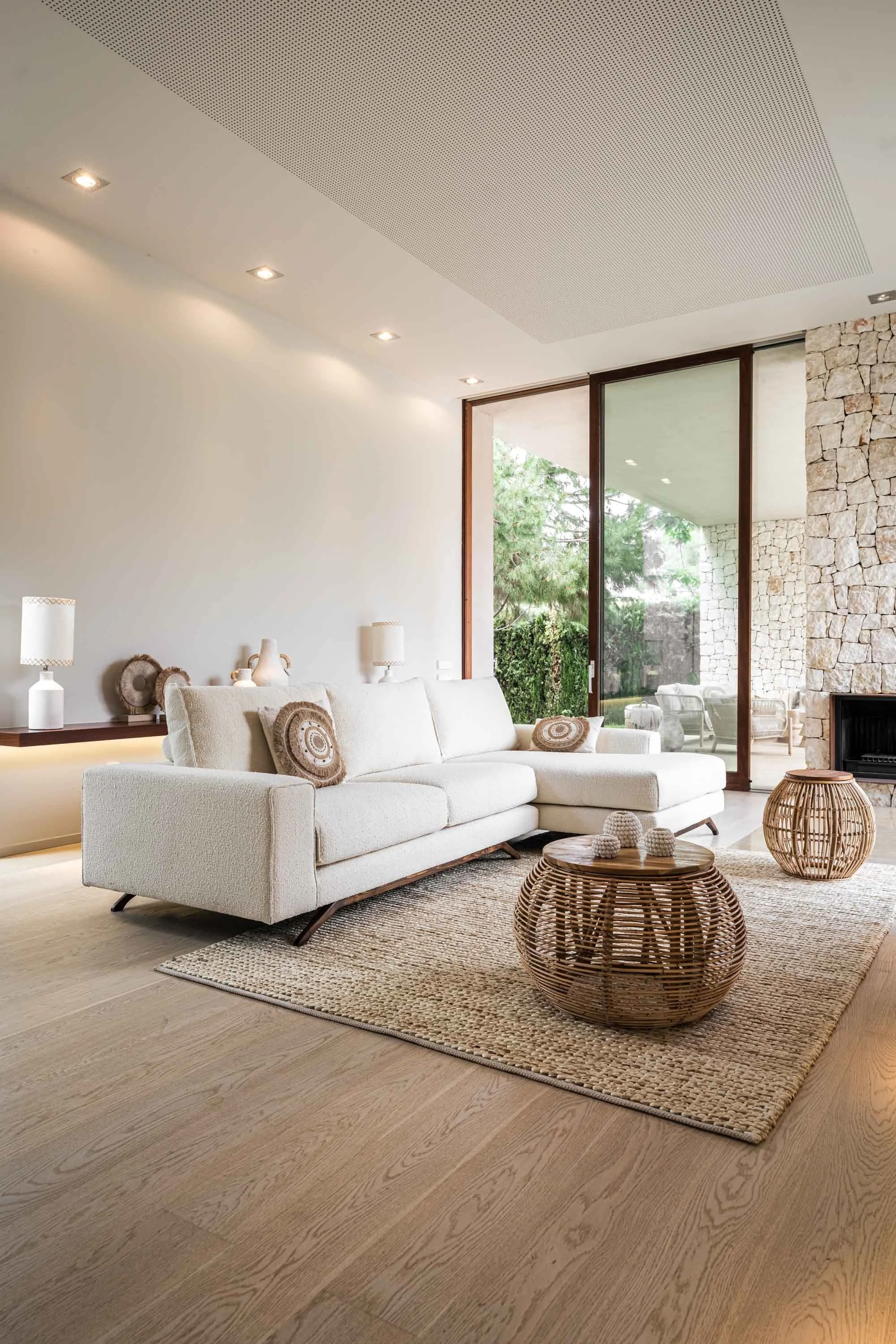Una estética mediterránea que eleva cualquier espacio, dentro y fuera. Sofás de lino, mesas de madera y muebles de exterior que dialogan con la orilla. Diseño depurado, materiales nobles y disponibilidad inmediata para amueblar sin esperas.
