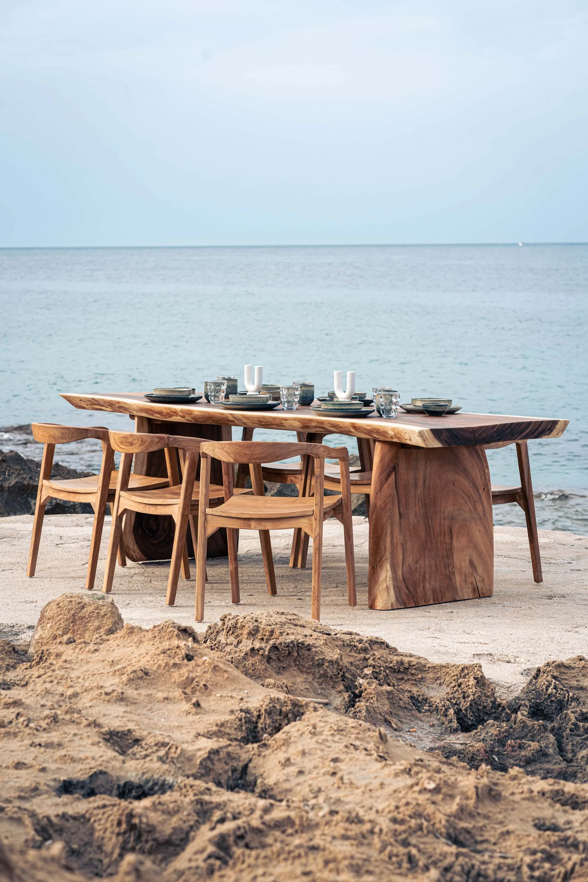 Mesas de comedor, centro y auxiliares en maderas nobles como teca y suar. Diseños naturales y modernos que aportan calidez y estilo.