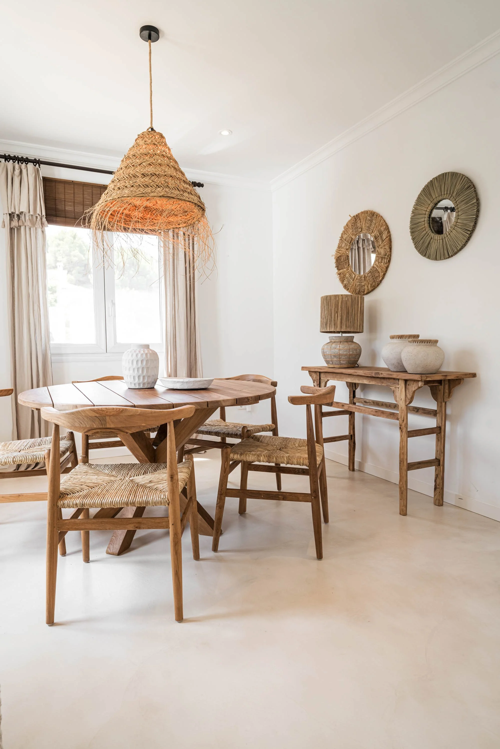 Decoración boho y mediterránea: espejos, alfombras, lámparas y cestas artesanales que aportan calidez y personalidad a cada rincón.